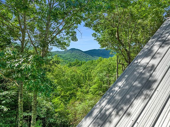 Tucked away in the woods, adjoins USFS (on 2 sides!), is close to the Appalachian Trail, and has a mountain view!! Take the trail out your back door to get to the AT, Albert Mtn Tower, and other USFS trails. Inside this lovely home, you'll find a functional layout of 4 bedrooms with 3 levels of living area. Main level features: Open Living Room, Dining, Kitchen with tall vaulted ceilings, lots of windows, a brick WB fireplace w/ a blower, T&G walls & an island dividing the Kitchen/dining and SS appliances. The primary w/ en-suite is on the main level with a walk-in closet, walk-in shower, and jacuzzi tub. The upstairs loft leads to a second bedroom. The freshly finished downstairs has it's own brand new HVAC system for its workout room with a specialized gym floor, a full bath, a bonus room currently used as a bedroom, and a workshop. The exterior landscaping is beautiful, and there is plenty of parking, a firepit, a rocking chair front porch, and a back deck off the living room. This house is a must-see as it feels like your own private oasis away from the hustle and bustle. Metal Roof for easy maintenance and no grass to mow! No HOA. Virtual Tour available.