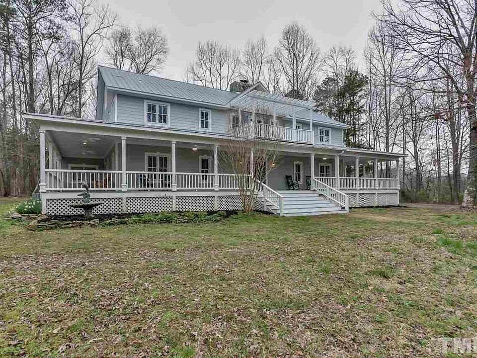 Enjoy being home in this custom designed contemporary farmhouse created for living & gatherings. Beautiful great room with 30' ceilings & towering stone fireplace. Large open kitchen w/ butler's pantry. Stunning owner's suite w/ exercise room, two bathrooms & private porch overlooking the pond. Jen Weld & Caradco windows, Jenn Air oven & custom millwork. A host of multi-purpose rooms for friends & family to enjoy. 12.8 acres with fenced pasture. Full basement too! Only 15 min to Saxapahaw, 20 to Carrboro!