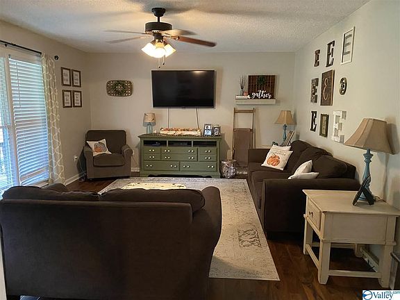 Check out this beautiful 3 bedroom 2 bath home in Willow Lake Subdivision. Great location! Cozy living room with floor to ceiling windows. Amazing kitchen/dining area with granite countertops, tons of cabinets, stainless steel appliances, glass flat top stove, hardwood and tile flooring, spacious bedrooms with carpet. Huge laundry room, attached garage, large covered front porch and large back deck. Fenced in backyard. Close to beautiful Lake Guntersville and minutes from boat ramp.