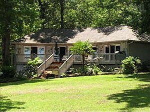 Gorgeous main channel lot with views for miles! Wooded lot with privacy. Home features 2 master suites. Home has custom oak cabinets in kitchen and laundry room and a custom oak entertainment center in great room. Great dock. Sandy beach on one side.