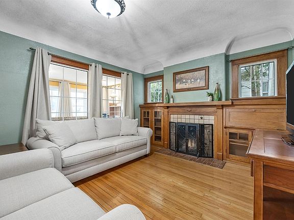 Step into this beautifully updated 1927 gem! This inviting home features exquisite woodwork, elegant archways, and stunning wood flooring. Upon entering, you will find a nice multifunctional room currently being used as an office and sitting area. Step into the large living room with beautiful built-ins and a gas fireplace. This room connects seamlessly to a formal dining room. You will appreciate the two bright and airy bedrooms with a full bathroom and built-ins between. The kitchen completes the main level where all appliances are included. Just off the dining room you can walk up to a large attic space; over 350 square feet currently being used for storage but could easily be finished. Head downstairs to an updated basement with a large laundry room, rec space, a wine/canning room, a non-conforming room with closet, and a full bathroom. Updated windows throughout provide plenty of light and functionality. Step outside to a private, fenced yard with beautiful landscaping, perfect for outdoor gatherings and play. The HUGE 28' x 40' garage provides plenty of room for your vehicles and toys and is a great place to hang out with friends, host game nights, or work on your next project! This space offers a service pit, 12' garage door, ample storage, TV hookup, and a half bathroom! You will also appreciate the additional attic storage. Call today to schedule your private tour!