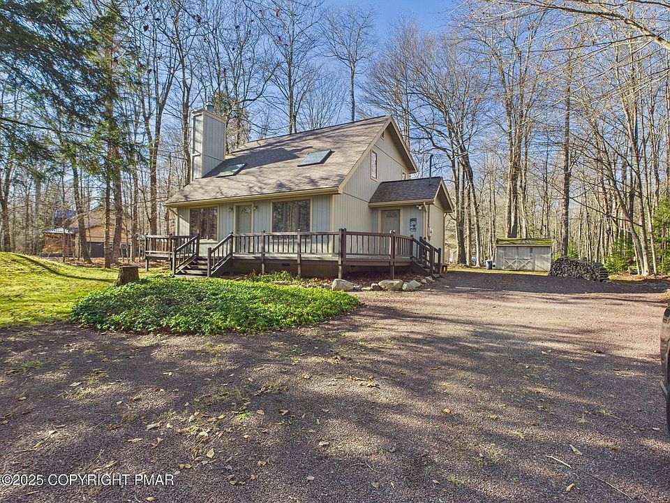 This cozy mountain home is ready for a new owner to come and start living their best life. Very well maintained home has been in the current owners family for 25 years. Pull in to your gravel driveway. Home has extra large front/side deck and oversized back deck. Enter your home into a cozy living room with gas fireplace. Open floor plan for LR/DR/Kitchen. Also on the first floor enjoy a large bedroom, one bathroom, and a generous size utility/laundry room. Head upstairs to a beautiful loft with skylight flooding the space with natural light, picture yourself curled up with a hot cocoa and a good book. There is also two additional bedrooms and another bathroom. This home is a short walk to the lake. Community is STR friendly. Close to Pocono Area attractions, waterparks, casino. paintball, hiking, fishing, outlet shopping. Pass the time away on your great porch/deck spaces. Remember, life is better at the lake.