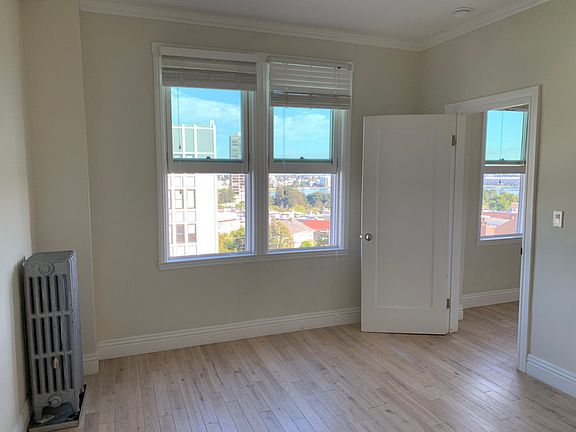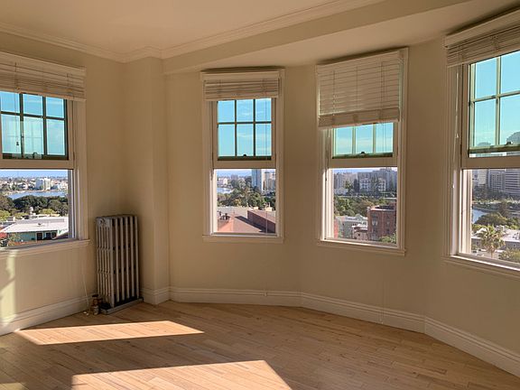 Great view! Fully remolded apartment with new hardwood floors, and stainless steel appliances: (stove, microwave, refrigerator, and dishwasher - including garbage disposal). Bathroom has been freshly refinished with new tile, vanity and glass enclosed shower. The six floor apartment building is nestled in the attractive Adams Point neighborhood; a few blocks from Whole Foods and a block away from beautiful Lake Merritt. Classic foyer and lobby area with mosaic tile and Art Deco overtones. Located close to BART, shops, restaurants, AC transit, easy access to 580-980-24 highway, and casual carpool area. Owner pays for water and garbage. Tenant responsible for PG&;E and internet/cable. MMG302 CalBRE License #990193