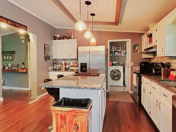 Do you need country yet close to banks and stores, hospital? Check out this tastefully updated 4BR/2BA home on 0.85 of an acre of land! Enter the formal living room and notice the beautiful floors, fireplace and painted with today's colors! The kitchen is stunning with it's granite counters, beautiful floors, ample lighting and breakfast bar. The formal dining room is ready for those gatherings and the added sun room is where you can relax after those meals. The owner's suite features a full bath with walk in shower. Secondary bedrooms all of good size. Hall bath updated beautifully! There is a carport at one end of the home and a detached garage at the other end. A few little projects still need to be completed. Motivated Seller! sold as i s. Must see! Buyer to verify all info