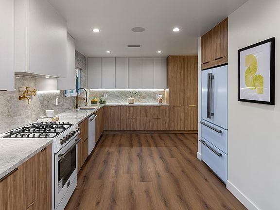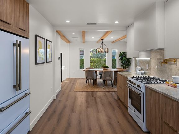 Nestled in the heart of Santa Monica's coveted beachside enclave, this stunningly reimagined contemporary retreat offers a seamless blend of coastal charm and modern luxury. Set on a beautifully landscaped corner lot, the home boasts exquisite curb appeal, framed by lush hedging for ultimate privacy. The inviting outdoor spaces include a meticulously designed backyard with multiple lounge areas, a built-in dining platform, and a majestic, sculptural tree that serves as the heart of the serene setting. The expansive lot also offers ample space for a pool, providing the perfect opportunity to further elevate this exceptional outdoor retreat. Step inside to discover a bright and airy interior, where sleek finishes and thoughtful details create an effortless flow. Expansive windows fill the living spaces with natural light, highlighting the rich wood flooring and sophisticated design elements. The gourmet kitchen is a chef's dream, featuring high-end appliances, custom cabinetry, and a seamless connection to the outdoor entertaining areas. The primary suite offers a private sanctuary, complete with elegant finishes and direct access to the tranquil backyard. Additional bedrooms and flex spaces provide versatile living options, perfect for a home office, gym, or guest accommodations. A detached structure adds further functionality, ideal for a creative workspace or a secluded retreat. Beyond the home's exceptional features, its prime location places you just moments from the ocean, Palisades Park, and Santa Monica's finest dining, shopping, and entertainment. A rare offering that perfectly balances modern sophistication with relaxed coastal living.