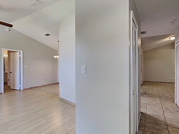 Discover this spacious 3-bedroom, 2-bathroom home nestled in Kissimmee. Featuring a thoughtful split floor plan, the residence offers an inviting open-concept living and dining area alongside a separate family room, perfect for relaxing and entertaining. Step outside to enjoy the large screened-in lanai and an expansive, fenced backyardideal for outdoor gatherings and play. Inside, vaulted ceilings enhance the sense of space, complemented by stylish tile and laminate flooring throughout. The galley-style kitchen boasts modern, updated appliances and a convenient pantry. The generous master suite includes a walk-in closet and a private bathroom with a walk-in shower and a separate toilet room. Additional highlights include a 2-car garage with laundry hook-ups, providing both convenience and functionality. This charming home combines comfort and practicality in a desirable Kissimmee location.
