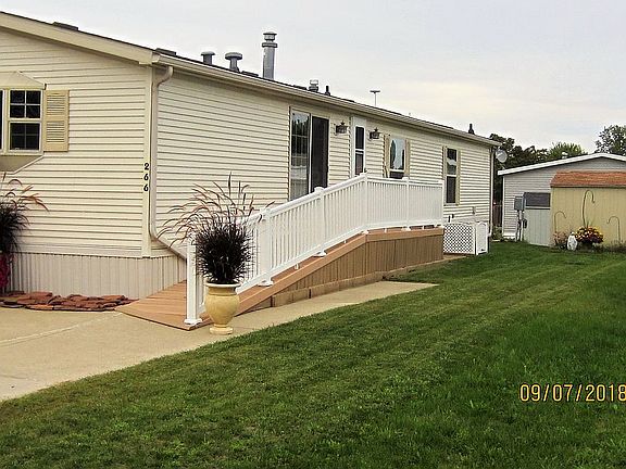 2002 Friendship Manufactured home that you must see to appreciate. Immaculate home that is very well maintained. Open floor plan includes efficient kitchen with large island, family room with stone fireplace and an impressive china cabinet, dining area with sliding door to deck and handicapped ramp. Living room has a coat closet convenient to the front door and porch with Trex decking. Master suite with walk-in closet and double doors leading to the on-suite bath with separate room for toilet and shower. Pleated shades are in the family room, living room and master suite. 2 bedrooms with ample closet space. A laundry room is accessible from the kitchen or deck with ramp and includes a half bath and large cabinet . Entire home has been painted, new carpet in family room, living room and master suite with new linoleum in the kitchen, dining room, laundry room and all bathrooms in 2016. 2018 hot water heater, 2012 furnace, 2010 air conditioner. Range, refrigerator and dishwasher stay with the home. 8x8 storage shed Email with questions or to schedule an appointment to see this beautiful home - masonvillage@gmail.com