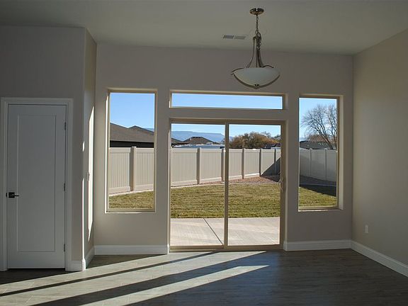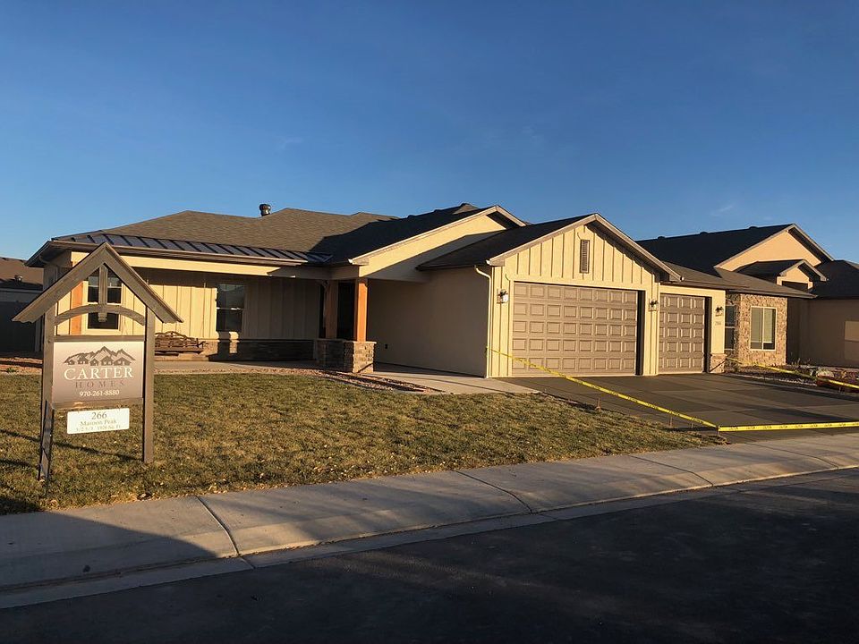 Another quality built Carter Home featuring 2x6 construction, extra insulation & special ceiling features such as a built in tray ceiling in living rm and 10' ceilings in living, dining, and kitchen & 9' ceilings in all bathrooms. Large kitchen with ample counter space including an island bar, pantry, & includes granite counter tops throughout & all appliances (gas range/oven). Master suite with double vanities, stand alone soaker tub, walk-in shower & his/hers walk-in closets. 1/2 bath has subway tile all around walls. Wide plank tile everywhere except bedrooms. Extra special mud/laundry room with extra shelving, mud sink and just off garage. This property is already fully landscaped with tan vinyl fence package, sod, etc. From patio you can see the Mesa plus lots of yard space especially on the North side. No one can block your view from the back. Completion approx. end of November