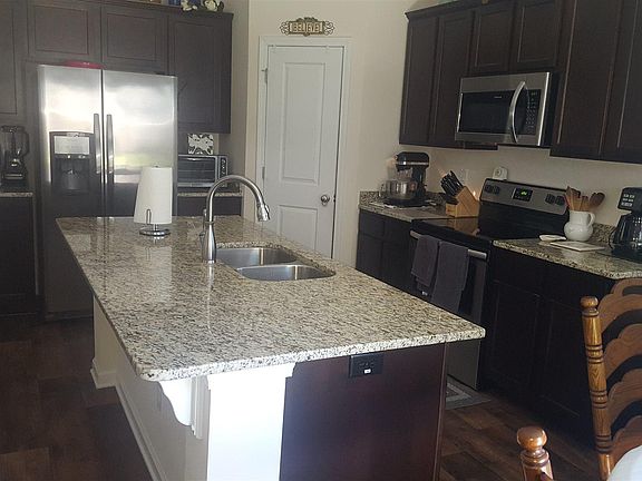 - Kitchen: Counter Tops-Granite, Eat In, Pantry, Island, Cabinets-Stained, Floors-Vinyl