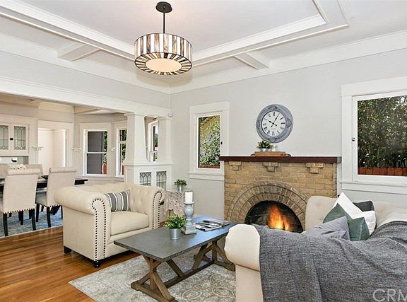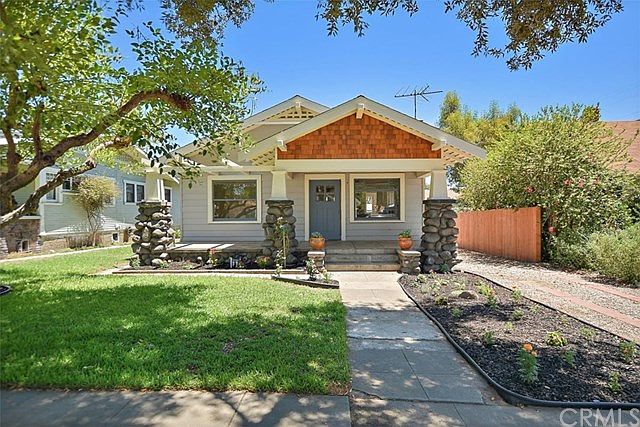 Fall in love with this stunning 1912 Craftsman Bungalow in Historic Upland! This beauty is a true Craftsman and has been completely restored and upgraded to keep its original charm. The wainscoting and dining room cabinets have been completely restored and brand new solid wood floors have been installed throughout the home. The bathroom includes the original clawfoot tub with new fixtures, tiled floor and walls. The kitchen has been updated to include new cabinets, quartz counters and stainless steel appliances. Amongst the many upgrades are a brand new roof and central a/c! Perfect for the summer heat! The backyard is huge with brand new sprinklers and has been seeded for grass. It also has a detached two car garage that has rebuilt sliding barn doors with spacious alley access for large vehicles. This home is hitting the market for the first time in over 50 years and is a must see!