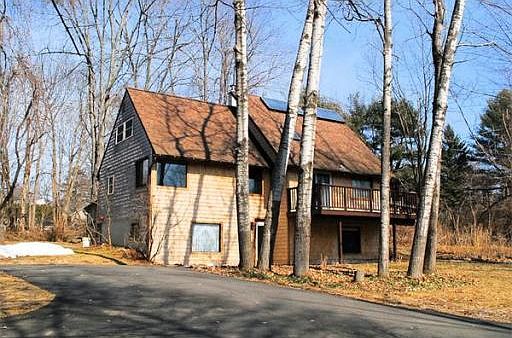 Contemporary style on three levels in superb country setting near amherst town line. Open floor plan with 1,785 square feet of living space. Modernized kitchen with granite countertops, double stainless steel sink, and cherry cabinets. All appliances included microwave. Three bedrooms with private bath and granite in master. Newly remodeled full bath on main level. Cathedral ceiling with north light windows in spacious living room. Loft/ balcony overlooks living room. Freestanding european ceramic woodstove in living room. Hot water base board heat with newer "Munchkin" boiler. Washer and dryer on first floor. Rear screened porch through double doors off living room. Attached storage room at rear of house. Attractive wood shingle siding. Architectural-grade roof. Recently paved driveway. Set on naturally landscaped .64 acre on high side of road of gently, upward sloping land. Second floor deck off living room facing west with view of holyoke range - CALL TODAY FOR VIEWING