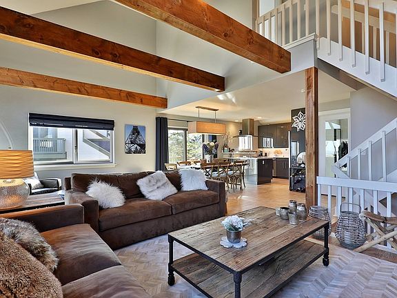 Beautifully updated 4 bedroom, 3 1/2 bath townhome end unit with direct slope access to the Sachem Trail. Sunny south end of building w/ hot tub on deck. Long distance mountain views. Expanded mudroom. Open living design. Owners' suite w/ privacy balcony. Three additional bedrooms, one en suite. One of the best ski-on, ski-off locations in the Okemo Trailside community.