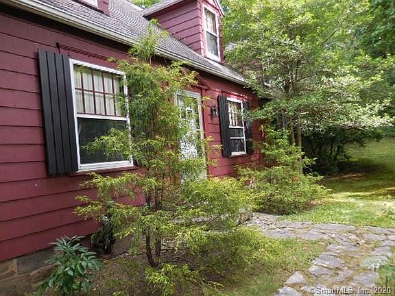 Step back in time where charm and character abound 2-3 BD, 1.5 BTH expanded, dormered Cape, situated on almost 2 acres & just a few minutes to everything As you approach the stone walled entrance and driveway, you will feel as though you are transported to a simpler time. The main entrance of the home greets you with gorgeous woodwork, doors, moldings & H/W floors throughout. Entertaining is made easy in the large formal LR, showcasing builtins and a stone fireplace, that leads to a generously sized formal DR. The EIK offers a quaint alcove breakfast nook & backdoor access to a covered side porch. Off the DR you will find a spacious FR addition, touting exposed beam ceilings, a 2nd wood burning FPL & side door access. The versatility & location of this room make it the ideal candidate for a 1st floor master BD or possible inlaw set up Half BTH completes the 1st level. The upper level offers a roomy BD w/ builtins & a walk in closet. The MSTR BD over the addition creates a rustic, expansive feeling with exposed beams, vaulted ceiling, crawl spaces & 2 walkin closets. The room leading into the MSTR BD is perfect for a home office with builtins, nursery, den or 3rd BD. Full hall BTH with tub & a linen closet complete the upper level. Unfinished basement has great storage space. Newer boiler & oil tank. The peaceful, private retreat backyard is filled with flowering trees, 2 sheds and a fenced dog kennel. Just minutes to shopping, lake, parks, Rte 25/Merritt/I95