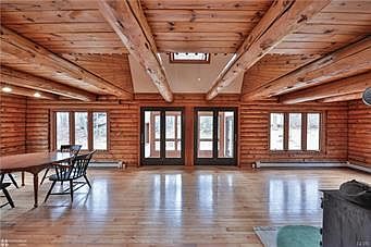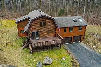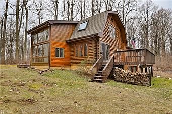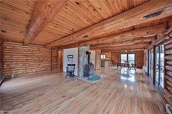 Privacy and Nature abound on this 6.5 acre property. This beautiful log home, nestled in the woods, features FIRST FLOOR living and has newly refinished hardwood floors throughout; a kitchen with granite countertops and new stainless steel dishwasher, range, sink and faucet; and a master bedroom suite with beautiful sky lights and a separate 'home office' area. Three bedrooms and a full bath round out the second floor. The lower level features a large family room and a mud room conveniently off the garage. In addition to the attached 2-car garage, a detached 2+ car garage for cars, storage or off-road toys was built in 2012. This well-maintained home has many recent updates, including the caulking of all log joints, and the staining of all logs in 2020, and a new roof on the main home in 2017. An adjoining 50-acre lot is being offered for sale separately - see MLS# 657701 at 360 Pilgert St. PLEASE DO NOT ENTER THE DRIVEWAY WITHOUT CONFIRMED APPOINTMENT.