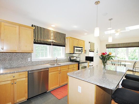 Sought after, No Marshfield's Woodland Hills neighborhood. Pristine 9 room, open floor plan, colonial! Bright Maple, cathedral, eatin kitchen w skylight, granite counters and island w/slider to mahogany deck. Kitchen opens to sun drenched FR w fireplace and custom mouldings. Formal LR and DR with wainscotting & stunning birch floors. Large, cathedral master bedroom & bath, 3 additional BRs. 2.5 baths (full baths w/ granite counters). Finished bsmt w slider to fenced in back yard, set on a professionally maintained acre, mature plantings & flowering trees with spectacular views and stunning sunsets! Many new energy efficient windows & sliders, 2 car garage, Gas heat, CAir, 200 amps, sec system, irrigation. Enjoy the benefit of the treelined streets, sidewalks & friends just outside your door. Mins to shops, highway, commuter rail, school complex. Best beaches, golf, marinas, restaurants, Boys & Girls Club. Come see all this home, neighborhood and Town have to offer!