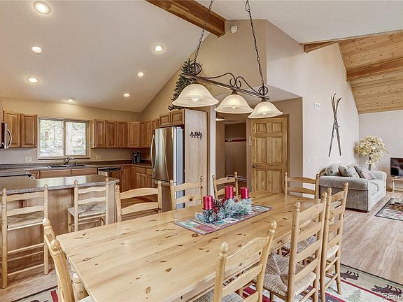 It's time to have your own home in the mountains! This beautiful 3 bedroom, 3 bath home is located on a one-acre treed lot with views of Mt. Silverheels. Relax and enjoy the main living area with vaulted T & G ceiling, wood burning stove with full stone hearth and soaring windows. The spacious kitchen has 42 inch cabinets, SS appliances, and pantry. The dining area opens to a large Trex deck. The master bedroom retreat on the second floor has a beamed vaulted ceiling, master bath and large walk-in closet. A finished walk out basement with spacious family room, two secondary bedrooms and full bathroom complete the home. New paint and carpet, solid wood six panel doors, and utility shed. Valley of the Sun community is located outside of Fairplay, less than two hours from Denver and Colorado Springs, and 25 miles from Breckenridge. This is your chance to enjoy year-round access to world class outdoor recreational activities.