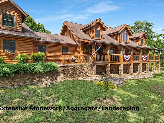 Beautiful Barna Log home sitting on a bluff overlooking the White River and Boston Mountains - 3.36 wooded acres- 20KW whole house generator - custom designed builtins -3 fireplaces - 2 story vaulted ceiling I the main room