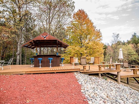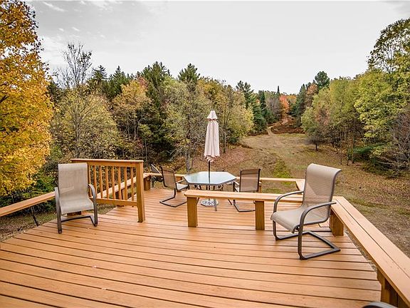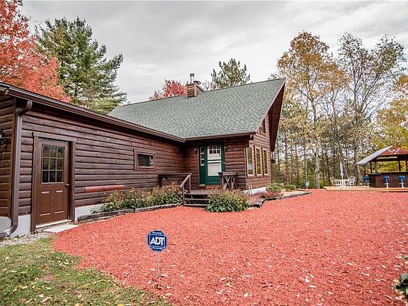 A Stunning log cabin in a picturesque setting tucked among the trees. The great room features an impressive floor to ceiling stone fireplace and a wall of windows letting in abundant of natural light. The dining room is perfect to host all those large family holiday's (or maybe just 10 this year). If you are feeling more playful than grand, then step into the game room with built-in bar there is plenty of room for a pool table and is already outfitted with the hot tub. The upstairs master bedroom features a Juliet balcony and en suite as well. if you still need more than 3 bedrooms a partially finished basement provides another bedroom and a full bath. Don't forget the outside tiered decks they're just waiting for you to host your next barbecue. Located just minutes from Hinckley reservoir, state lands and snowmobile trails. This beautiful home is set on 5 acres with an additional 37 surrounding acres currently available.