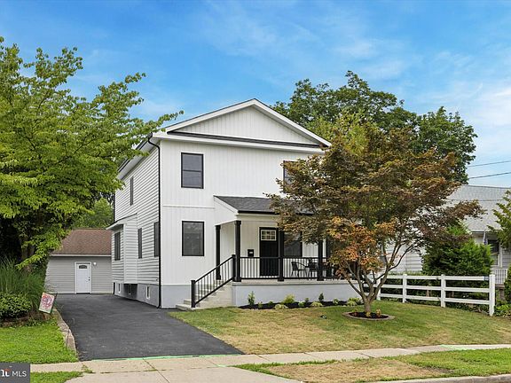 Welcome to the New Audubon Standard. 266 S Haviland Ave is not just a renovation—it’s a complete reinvention. Formerly a humble bungalow, this home has been fully rebuilt from the foundation up into a striking two-story modern masterpiece. With four bedrooms, two-and-a-half baths, a dedicated office/flex space, over 1,000 sq ft of finished basement, and every system brand new, this home is truly one-of-one. The exterior stuns with bright white board-and-batten siding, sleek black-accented windows, and a wide, freshly paved driveway. A deep front porch framed by bold black wood columns sets a sophisticated tone, combining modern design with timeless curb appeal. Step inside to an airy open-concept layout with seamless LVP flooring, crisp shadow box molding, and recessed lighting throughout. The show-stopping kitchen features two-tone shaker cabinetry, a quartz countertop and backsplash, a statement island, and a pot filler for convenience. The first floor also offers tucked-away laundry and a stylish powder room. Upstairs, you'll find four spacious bedrooms and a hall bath with designer ceramic tile. The primary suite boasts a walk-in closet and a spa-like en suite with gray slate floors and a stunning walk-in shower. Out back, the surprises continue with a detached pool shed featuring a loft, electric, and A/C—perfect for a studio, office, gym, or lounge. Complete with a tankless hot water heater, two-zone HVAC, and high-end finishes throughout, this home is setting a new bar for what’s possible in Audubon. The new Audubon Standard isn’t coming. It’s here. And it's waiting for you to make it yours today!