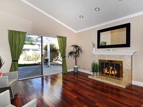 Rare Single Story Home In Prestigious 24/7 Guard Gated Rocking Horse Ridge Community. This Beautiful Home Has A Double Door Entry With An Extra Wide Foyer That Opens To A Spacious Living Room With Romantic Fireplace, Large Dining Area, High Vaulted Ceilings, Crown Molding, High Baseboards, Recessed Lighting, Wood Laminate Flooring, Travertine Tiles And Huge Sliding Doors To Your Very Private Back Yard. Large Kitchen With Tons Of Cabinets, Granite Counter Tops, Tray Ceiling With Recessed Lighting And An Extra Eat In Breakfast / Dining Area. The Master Bedroom Also Has High Vaulted Ceilings, Crown Molding, Sliding Doors To The Back Patio And A Private Bathroom Complete With Oval Soaking Tub, Double Sinks, Separate Toilet Area And Large Closets With Mirrored Wardrobes. Both Additional Bedrooms Have Mirrored Closets Wardrobes, Crown Molding And One Has A Slider To The Back Yard As Well. Guest Bathroom Is Upgraded With Newer Vanity, Designer Lighting And Custom Tiled Shower With A Sitting Bench. The Corner Lot Features A Wraparound Yard With Raised Planters, High Privacy Trees And Two Covered Patios. This Secluded Community Offers The Following Amenities Pool, Clubhouse, Tennis Courts, Kids Play Area, and Close Walking and Hiking Trails.