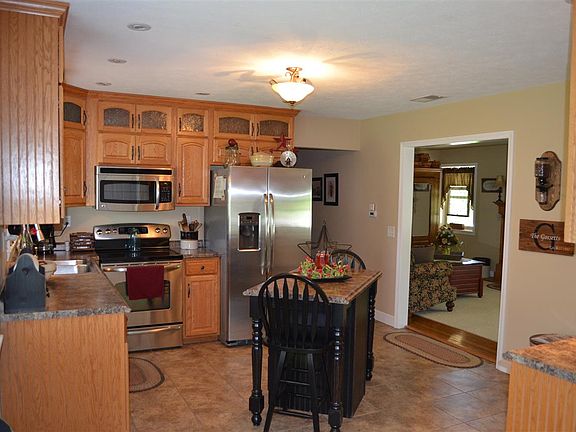 You won't want to miss out on this one. Beautiful 3 bedroom, 2 full bath ranch with walk-out basement. At first glance you will fall in love with the set up of this property. The brick home and detached garage have much to offer. There is also a 30 x 40 pole barn with a 10 ft. lean to on each side. The home opens up with a beautiful foyer entry with natural, original hardwoods flowing through most of the main level. The over sized living room has a beautiful wood fireplace with custom mantle and large picture window for natural lighting. The updated kitchen offers an abundance of kitchen cabinets and all stainless steel appliances included. The movable island is also included and adds great charm to this kitchen. The kitchen is big enough to put a small table and use as an eat in kitchen. Down the hall on the main level you can enjoy 3 large bedrooms and a full bath. Downstairs there is a second full kitchen with a large area for dining. There is also a pantry for good storage. The basement is loaded with amazing closets along with a large laundry room with lots of hanging space. The spacious living room offers a gas fireplace. There is also a full bath with shower. Home is situated on 1.5 acres and has an attached one car garage plus a detached 2 car garage and a pole barn This home is a must see!