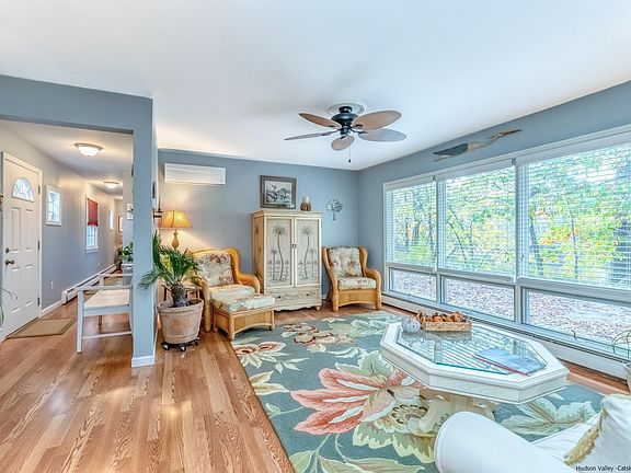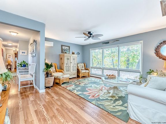 Wake up to the soothing sounds of the creek, and head to the deck with your favorite cup of joe to watch the blue herons, or raft of ducks, or gaggle of geese and several species of hawks and eagles. This is a 1,638 sq. ft. well-maintained ranch style home nestled along the picturesque shores of Esopus Creek on .48 acres. The property offers 3 bedrooms, 2 full baths on a quiet dead-end road. A perfect place to escape from the hustle and bustle of city life. The spacious living and dining room features large windows that flood the space with natural light with views of the creek. The generously large primary bedroom has plenty of closet storage and a sitting/reading area. The mud room has a washer/dryer, and tankless water heater. The home has 3 zones for heat, plus two mini split ducts for heating and cooling. The oversized attached 2 car garage makes it easier during the winter months and has ample room for planting, or hobbies. The property has direct access to the water, this property is a paradise for nature enthusiasts and water lovers. Explore the beauty of upstate New York with easy access to fishing spots, swimming, kayaking and recreational activities in surrounding areas. Experience the charm of every season, from vibrant foliage in the fall to snow-covered landscapes in the winter. This home can be a permanent year-round retreat, or second home or a possible Airbnb income producing property. Despite its peaceful setting, the home is centrally located to both Uptown Kingston and Village of Saugerties, 12 mins. Locals favorite, Adams Fairacre Farms is 6 mins. and 18 mins to Rhinecliff Train station. Albany International airport is 45 mins and NYC is less than 2 hours away. Schedule a showing today and discover the magic of Esopus Creek waterfront living.