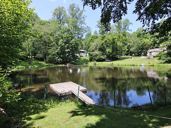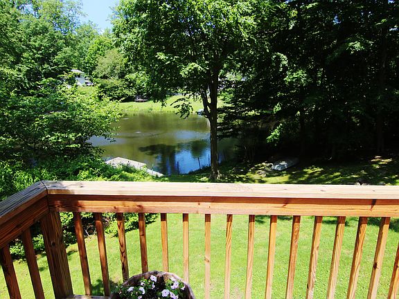 Spacious Colonial on a c-d-s, 1 of 9-lucky homes on a picturesque lake where you can swim, kayak or canoe in summer, skate in winter, or relax & enjoy the views inside or out Enjoy grand space/flolg rms & hdwds. EIK designer reno'd in 2017 w white cabinetry, granite countertops, center island, French door refrigerator+Bosch wall ovens, cook-top & dishwasher. Bamboo flrs, decorative tile, & gorgeous lake views add finishing touch. Easy year 'round entertaining - open LR w fpl flows to spacious/airy DR w water views, while charming Great rm has vltd beamed ceiling, fpl wall & sliders to expansive deck viewing the lake. Roomy office/den+cleverly designed laundry/mudrm w back door entry too. 5BRs up incl lg Master w fab lake view. C/air, back patio - foget traffic & vacation at home