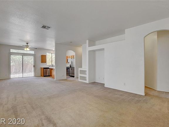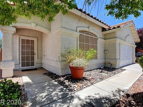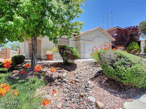 Adorable single story home in Henderson with three bedrooms and two full baths. Super open floor plan with high ceilings and ceiling fans. The gourmet kitchen comes equipped with stainless steel appliances, breakfast bar, and big window overlooking the beautiful backyard. Owner's suite has a walk-in closet and oversized tub in master bath. Plenty of storage throughout. Gorgeous mature landscaping in front and back installed by a landscape architect. Flagstone back patio is perfect for entertaining and enjoying the outdoors. Energy efficient dual pane windows with solar screens. Separate laundry room includes washer and dryer. Home backs to walking trails. Convenient location to the 215, parks, sporting complex, beautiful lake with ducks and geese, and shopping. Don't miss this home. It won't last long!