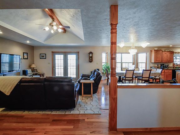 This Beautiful walk-out basement home is set on 3.17 acres of both open flat and wooded land. This large home has over 1800 . of finished living space along with a full un-finished basement complete with a John Deere room, large living area and fully plumbed bath.The main floor features gorgeous hardwoods throughout. A spacious kitchen with plenty of cabinet and countertop space along with a large open living area, perfect for entertaining. A Brand New HVAC system has just been installed for the new owners. This property is located in a subdivision of like homes on a county maintained road.