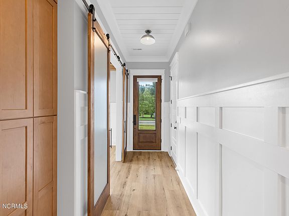 Step into luxury with this stunning St. Thomas floorplan by Channel Marker Homes, nestled in the prestigious gated waterfront community of Summerhouse on Everett Bay. This exquisite residence, situated on a serene lakefront lot, offers the perfect blend of Southern charm and modern elegance. Enjoy the spacious open concept design with 10-foot ceilings on the first floor, featuring a living room with cathedral ceilings and exposed beams, a gas log fireplace, and sleek hardwood floors. The gourmet kitchen is perfect for entertaining featuring an extended white quartz island with waterfall edge and breakfast bar, double stacked Rye cabinets with soft close drawers, and a large corner pantry. The main level primary suite is a true retreat with cathedral ceilings, exposed wood beams, two walk-in closets, and an en-suite bath featuring separate vanities, a free-standing soaker tub, and an 11-foot custom tiled walk-through shower. The first-floor bedrooms are private from the primary suite and share a beautifully tiled bathroom. Upstairs, the fourth bedroom or large flex space includes a walk-in closet, full bath, and storage closet. Outback you can relax on the enclosed rear patio with an outdoor kitchen and grilling area or enjoy the serene lake views from the extended screened-in back patio. Summerhouse on Everett Bay offers an array of amenities including two gated entries, a resort-style pool with a lazy river, tennis courts, a clubhouse, a boat launch with direct access to the Intracoastal Waterway, on-site boat storage, picnic areas, a nature park with a fire pit, walking trails, an open-air pavilion, a playground, and a fully equipped fitness center. The community is conveniently located between Wilmington and Jacksonville, and just minutes from MARSOC, Camp Lejeune, Topsail Beaches, and Stone Bay.