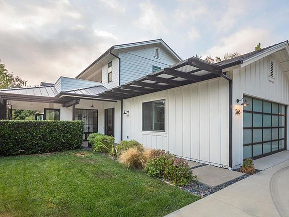 Welcome to this stunning modern farmhouse, built in 2017, and nestled on a private street in the charming community of Olivenhain. A gated driveway leads to your own private oasis where you are greeted by a grand iron-framed glass front door, and an expansive open floor plan that seamlessly blends indoor and outdoor living. Sunlight pours through the La Cantina doors and large picture windows, illuminating the spacious living areas. The kitchen is a chef's dream, boasting top-of-the-line Thermador appliances, a generous island, pantry, built-in breakfast nook, and a Dutch door opening to the side yard. French oak floors flow throughout the home, accentuating the spacious living room and dramatic dining area. The first-floor primary suite, nestled in its own private wing, allows for utmost tranquility and privacy. The suite opens to the backyard and features a spa-like master bath and a spacious walk-in closet. Completing the main level, you'll find a powder room, a generously sized laundry room with ample storage, and convenient access to the finished garage. Upstairs, you'll discover a spacious landing that leads to a remarkable bonus room, ideal for relaxation and entertainment. This versatile space features beautiful built-ins for a media center, and two sets of French doors that lead to a massive and private deck with breathtaking views of Olivenhain. The second floor features two wings, one with a large bedroom and en-suite bath, and another with two equally spacious bedrooms that share a sizable bath with dual vanities. Spanning an impressive 0.56 acres, this property is designed for outdoor entertainment. Three distinct outdoor areas await, each with its own unique charm. The first opens from the living room showcasing an attached porch swing and seating, while a sun-soaked deck above the pool offers a perfect spot for sunbathing. The centerpiece is a stunning sparkling pool, accompanied by a firepit and various seating and relaxation spaces, completing the idyllic outdoor experience. Located less than 4 miles from the beach, and in close proximity to esteemed schools such as OPE, Diegueno, and LCC, as well as parks and the I-5 freeway, this remarkable property harmonizes the tranquility of a private retreat with the convenience of modern living.