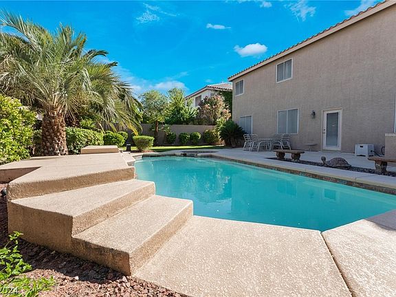 Gorgeous home located in a quiet, highly sought after, gated community in Henderson. Enjoy the tranquility of your backyard escape with large pool and spa, lush landscaping and plenty of space for entertaining. This 4-bedroom home features an open concept kitchen with Corian countertops, double ovens and large island. Downstairs Den can easily be converted to a 5th bedroom. Primary bedroom features ensuite bathroom with large soaking tub, separate shower, dual sinks and make-up vanity. This home is priced to sell. Schedule your showing today!