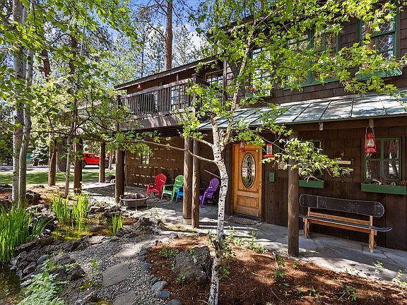 Iconic NW Mountain home on large in-town corner lot. Potential for partition/ADU. Partial Cascade Mountain views from upper deck & living areas. Interior features: Numerous custom materials; Wide plank 2'' thick oak flooring throughout 2nd floor and stairway (repurposed from decommissioned TN railroad cars); Natural stone faced fireplace; Reclaimed wood mantle from 100 year old Whychus Creek dam; Reverse living creates privacy & views; Open living plan; Remodeled kitchen with new cabinets, granite counters, stainless appliances; Wood framed windows; Antique leaded glass doors; Log beams and wood accents throughout; Primary bedroom with walk-in shower and connected sauna; Office with built-ins. Exterior features: Mature & well maintained landscape with numerous Aspen, Birch and Ponderosa trees; Water feature; Metal roof; Fenced in backyard area for pets and wood storage; Huge second level wrap around upper deck with Hot tub. All within a short walk to downtown Sisters & USFS trails.