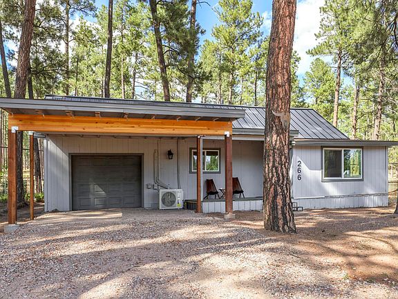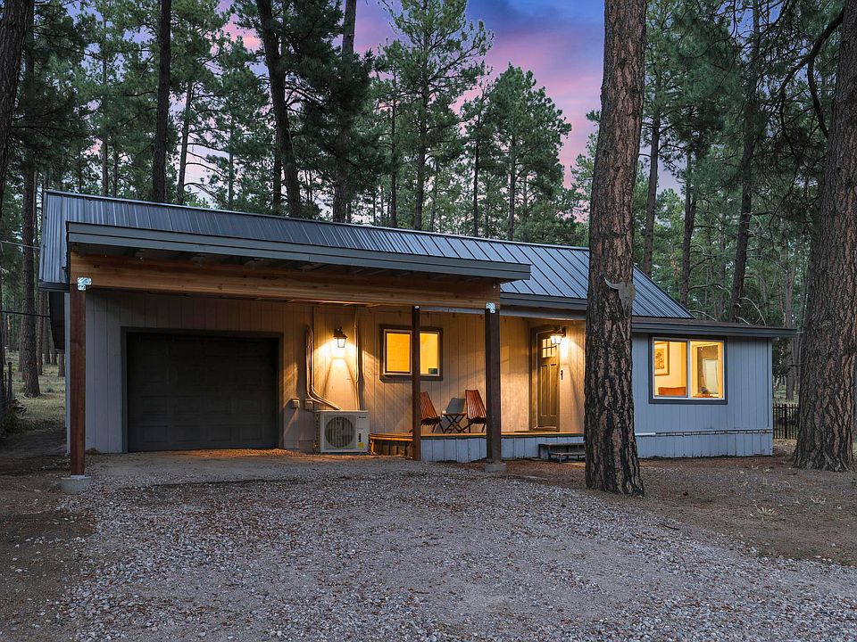 Reduced for Quick Sale-Set in the heart of the picturesque tall pines. This 2-Bedroom, 2-Bath, 1-Car Garage, 2-Car Carport cabin has been exquisitely remodeled with a New Metal Pitched Roof and Rolled Flat Roof. All New Luxury Vinyl Plank Flooring, New kitchen Cabinets and Granite Counters, All windows and doors are NEW. The drywall was even removed and re-done. And prior to that spray foam insulation was added to keep the weather out. There's also a NEW 3-ZONE Mini-Split Air Conditioner/Heater. The exhaust fans in the bathrooms have ''Instant'' heaters to take the chill off on those cold mornings. All of the plumbing and electrical has been re-done. Don't miss out on this one!!