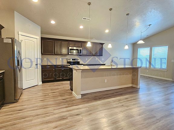 This open-concept 3-bedroom, 2-bathroom with office/flex space split floor plan offers both style and functionality. The living room boasts vaulted ceilings and abundant natural light, creating an inviting atmosphere. The kitchen features an island with a breakfast bar, a walk-in pantry, and includes all major appliances. The master suite is a true retreat with a spacious walk-in closet complete with custom built-ins, as well as an ensuite bathroom featuring dual vanities, a walk-in shower, and a soaker tub. A convenient mud area is located just off the garage, adding to the home's practicality. The fully fenced backyard provides privacy and a perfect space for outdoor enjoyment. Rest easy knowing lawncare is provided! **First months rent due at time of key pick-up.** **Available date subject to change. ** -Due to recent scams we are requiring anyone who wants to view the property to bring a valid driver's license or ID to our office before we give access to the property. -We kindly ask that you respect the current tenants, and not go to the home without prior approval. -Applicant is to verify the photos and listing information. **PROFESSIONALLY MANAGED BY CORNERSTONE PROPERTY MANAGEMENT**