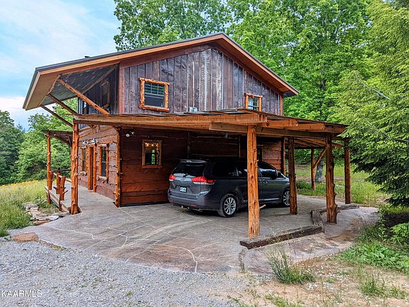 Live off the grid, but in style! This is a one of a kind, unique, custom build cabin sitting on a beautiful 5.07 unrestricted acres with seasonal small creek! The cabin was completed in March 2022 and updated with appliances and window air unit. This two story cabin has 3 bedrooms & 1 bath, a tankless water heater, full house filtration system, fiber internet, well water, septic and gas heat. The builder did special designed with concrete stamped floors, deck and countertops. Come make this your forever homeplace or weekend getaway cabin! Buyer to verify all information.