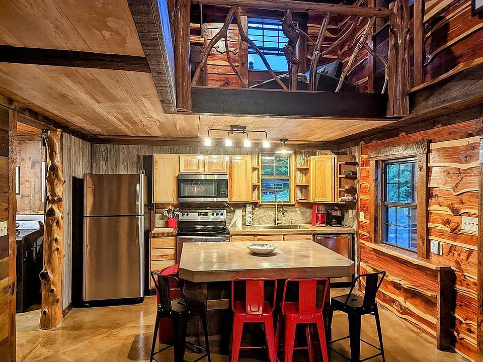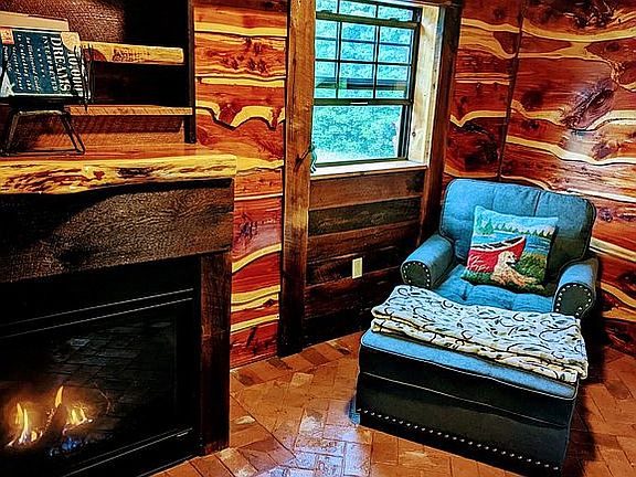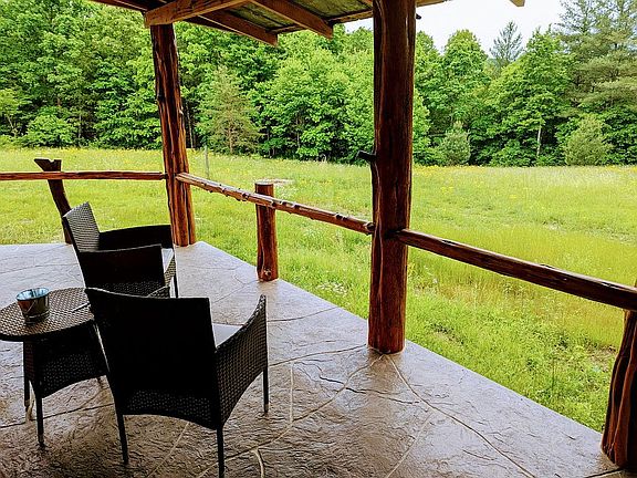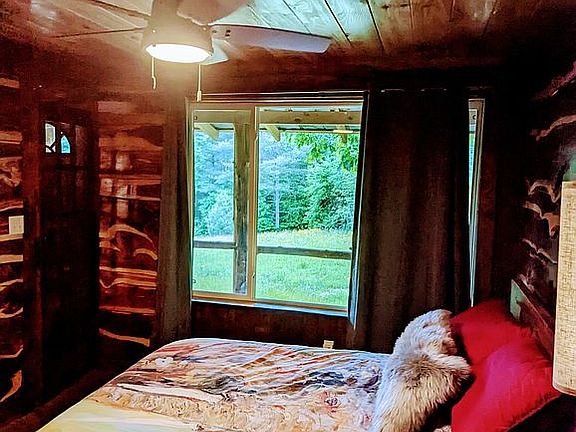Located of 5.17 unrestricted acres. Mostly flat with Buck Branch creek flowing through the property. Another small creek is on the property. Cabin was built in 2022. Both gas and wood burning fireplaces. Stamped concrete floors, deck and countertops. Shower is also custom concrete. Huge carport with RV hookups. Incredible custom woodwork interior/exterior. Over 20 different species of wood. Private location (Peaceful) Furniture/appliances negotiable. Offering 2 percent for buying agent.