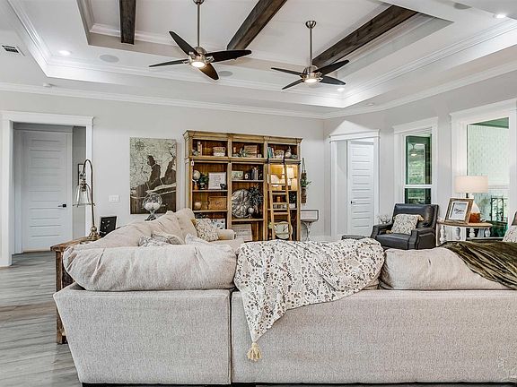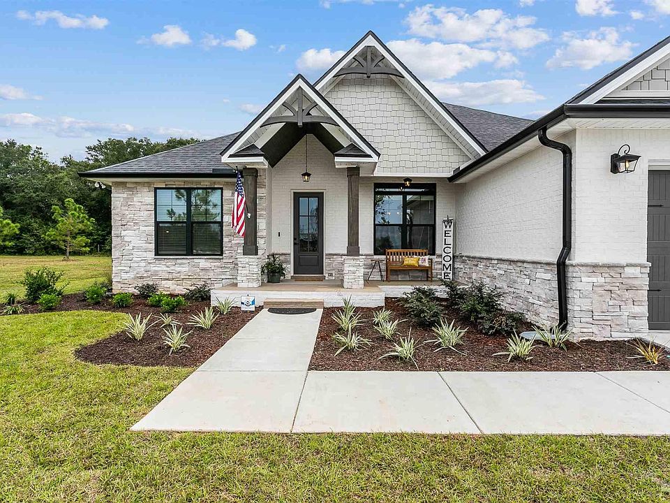 This exquisite Luciano Plan features a spectacular open living space. Step into the kitchen to find a stainless-steel appliance package including range, microwave, dishwasher, quartz counter tops, large walk-in pantry, beautiful island and dining area with 2 large picture windows that leads out onto the back covered porch. The master suite includes a tray ceiling, ceiling fan and highly durable carpet with #8 pad and door leading out onto covered porch. Step into master bath to find double vanity with quartz counter tops, custom tile shower and garden tub and large walk-in closet. This home also includes all LED lighting, programmable thermostat, insulated common interior walls. Outside features include a sodded yard, doubled pane vinyl windows, fabric shield hurricane protection for all windows, Taexx pest control system, an energy efficient high quality HVAC system, gutters over the front porch and an irrigation system. The garage is painted and trimmed and has 2 garage door openers, whole home water cut-off, insulated garage door and pull down attic access. Due to conveyance of stormwater system, lot sizes on property appraiser may not be accurate and MLS records are estimated. Final dimensions to be determined by a Florida licensed surveyor at closing.