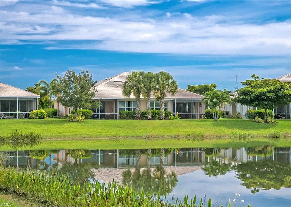 FORMER MODEL HOME WITH UPGRADES AND EXTRAS! Sunny southern exposure in a gorgeous, lush, park like setting on a large lake. Ibis model attached villa has 2 Bedrooms + DEN - 2 Full Baths -Laundry Room - 2 Car Garage. Open floorplan offers 1,533 square feet of living in a perfect layout. Vinyl Plank Flooring in main area, Upgraded White Cabinetry, Recessed Lighting, Tray Ceilings and Custom Mirrors, Crown Molding, Laundry Room with Sink and Storage. Home Buyers Warranty good till January 2021 is transferable. SANDOVAL PREMIER GATED COMMUNITY in Cape Coral! COMMUNITIES AMENITIES INCLUDE Lagoon Style Resort Pool, Active Community Center, 2 Spacious Dog Parks, Bocce, Basketball,, Disk Golf, Miles of Paved Walking Baths, Fitness Center, Fishing Pier, Horseshoes, Pickleball, Covered Playground,, Beach Volleyball, Shuffleboard, Tennis. HOA INCLUDES exterior building insurance, roof, lawn care, Wifi and Prism TV. An abundance of community activities and events at SANDOVAL