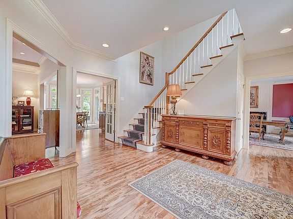 Stunning Georgian brick colonial. Regency custom built in popular Bartlett Manor. Large open foyer. Charming front living rm. Family rm w/GFP, HWF's, wall to wall windows and open to kitchen. Gourmet, remodeled kitchen w/custom cabinets, granite and high end appliances. Formal dining rm w/NFP. 1st floor full bth leads to main floor bedrm/office. Custom built ins and storage center off laundry rm. Master suite w/new remodeled bth, WIC, NFP & adjacent den/office/nursery space along w/walk in attic. 3 additional upper bedrms, loft space and full bth. LL complete w/stunning wine room, full bath (w/in floor heat)and bonus rm. Incredible back yard w/private patio, lush landscaping , fire pit and green space. Circle drive and 3.5 car garage. Home is well cared for and shows beautifully