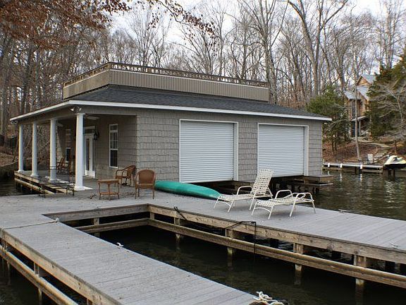 Main channel waterfront estate featuring 6.95+/- acre point lot, 1060+/- ft shoreline, 2 slip boathouse with roll-up doors, elec hoist, Trex decking, cruiser docking, 1 open slip, sun deck, seawall, excellent water, 5818+/- sf, 4BR/5BA, great room w/stone fp, dining rm, gourmet kit, breakfast rm, living room, sunroom, library, game rm, new master suite, heavy crown molding, 10 ft., vaulted & trey smooth ceilings, granite, hardwood, tile, stone & wrought iron security gate, irrigation & more.