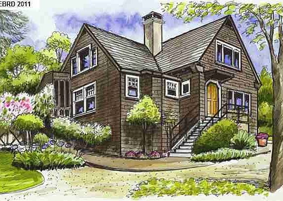 Quaint Brn. shingle on a magnificent, large, almost level lot with views, in an historic nrbhd., nr. U.C.Berk. Not included in sq.footage is a separate spacious studio w/skylights, sliding glass doors, bath & sauna. Feels very private. Potential for expansion. Close to \"Gourmet Ghetto\" & Tilden.