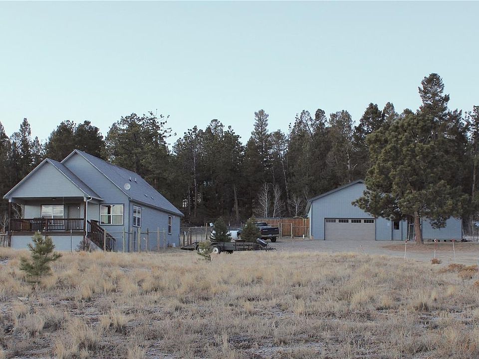 Location, Location, Location! With sweeping mountain views of South Park, Pikes Peak, Buffalo Peaks as well as the famous Mosquito Range, this 1,520 square foot home with a 1,560 Square Foot Garage sits in a serene setting, only 20 minutes from Buena Vista for fine dining and shopping, and the famous Arkansas River known for world class rafting adventures. Less than 2 miles from Hwy 285/24 and 2 separate National Forest access points for seemingly endless trails and outdoor adventures. The Ranch of the Rockies subdivision offers owners a 25 acre private fishing lake stocked with fish, a central trash service, an on-site Ranch Manager and office, RV water fill, RV waste dump, pavilion, horse boarding and Long Term and Short Term Rentals are allowed! The main level of this country charmer features 2 bedrooms with 2 full bathrooms, an office space and a private, finished bonus room upstairs with tons of storage! The large garage features parking for 2 full size vehicles and a large finished area behind the parking area offering many options and possibilities for multiple uses. Must See! The excellent private well, with a new pump, is approved for watering of horses! Which is a very rare water feature these days! The 2.5 acre parcel has the perfect mix of large mature pine trees and aspen trees and those incredible views! All roads in the area are County Maintained and offer easy year round access! Back up generator in place! Only 2 hours from Denver, 1.5 hours from Colorado Springs and only 1 hour to Breckenridge Ski Resort for world class skiing! Fish nearby Antero Reservoir, Eleven Mile Canyon Reservoir and State Park, Spinney Mountain Reservoir and State Park and endless Gold Medal Waters including the “Dream Stream”. Tons of wildlife in the area including large herds of Elk, Deer and Pronghorn Antelope! This Country Gem is located in the heart of Colorado and EVERYTHING the Great Rocky Mountains have to offer! Additional information available upon request.