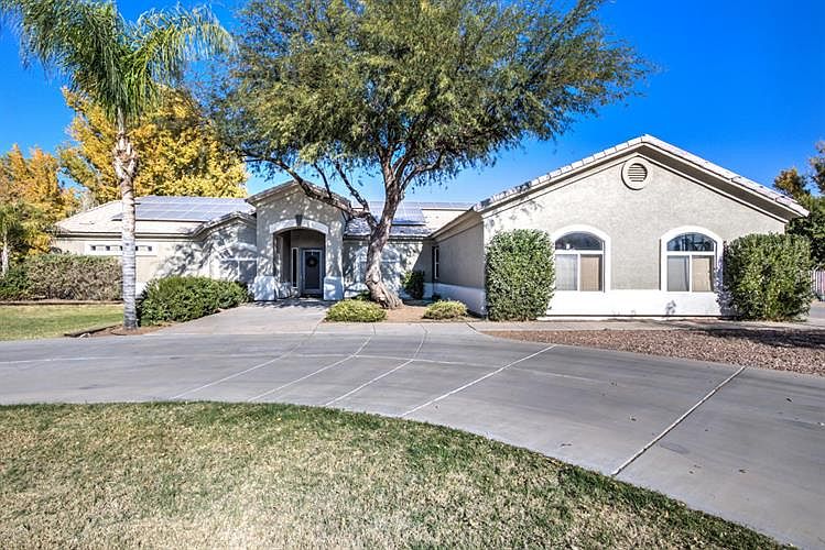 Enjoy country living with this Beautiful CUSTOM Home located in the heart of Gilbert, once a county island, now the city of Gilbert. This 4 bedroom, plus a den single level home has a split floor plan and boasts new interior and exterior paint. The kitchen has new stainless steel appliances, corian counter tops and a large walk in pantry. Large irrigated lot with plenty of space for a custom pool. 3 car garage and lots of extra room to park your RV and trailers. Enjoy low electric bills, this home has solar panels. So bring your horses, and your toy hauler this home has NO HOA!