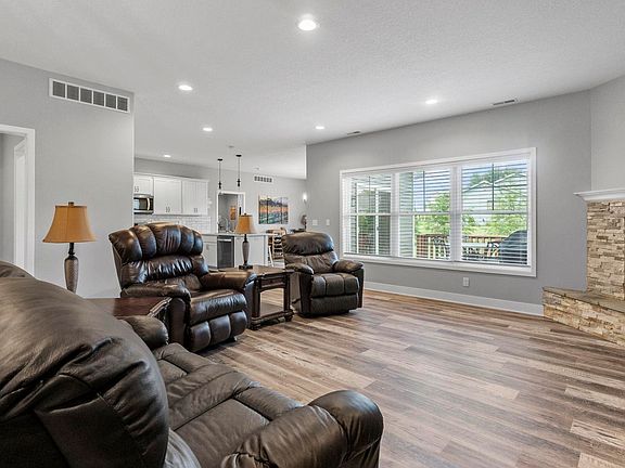 This beautiful ranch home is located in Muirfield Subdivision surrounded by Stonehenge Golf course and close to the walking/bike trails that leads to the greenway at Winona. It offers an open concept floor plan with 3 bedrooms, 2 full baths with over 2,000 finished square feet. Spacious living room with a gas fireplace, generous kitchen with quartz countertops, tiled backsplash, custom cabinets, stainless appliances, breakfast bar and plenty of room for a dining room table. Just off the dining area is the grand master suite with a walk in tiled shower, double sink vanity, tiled floor and a large walk in closet. The other two bedrooms and bathroom are located on the other side of the house. Entering the house from the garage is the mud room that has sliding doors that lead to the laundry room that has cabinets and counter space. Garage is oversized with an epoxy garage floor and offers a Tesla charging station. The 4 foot crawl space has a cement floor and plenty of room for storage. Sump pump is located in the crawl space. Sliding glass doors lead off the dining room to the deck that overlooks the backyard. This home has a stunning yard and landscaping and an irrigation system with rust inhibitor. Other amenities: security system w/exterior cameras, hot & cold water spigot in garage, invisible fence, sump pump with a back up, Rabb water softener in 2021 and drinking water RO system in 2022,