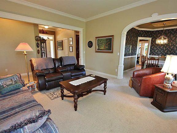 Stunning, lovingly cared for 3 bedroom, 2 bathroom home with mountain views! One bedroom currently being used as an office. Custom cherry wood cabinetry. Great kitchen with nook, formal dining, living room with gas fireplace, custom millwork archways, and 2x6 construction. Finished, insulated 3 car garage, stamped concrete patio, and new roof in 2014. Home backs up to a year round creek!
