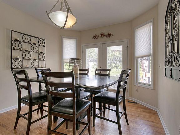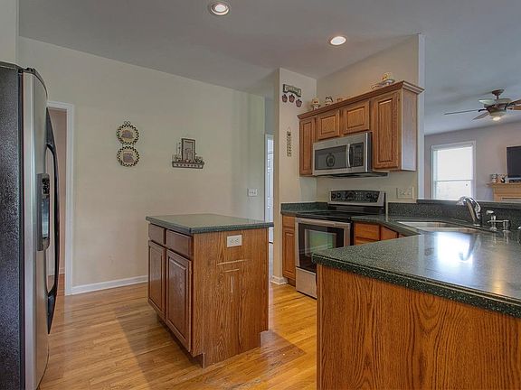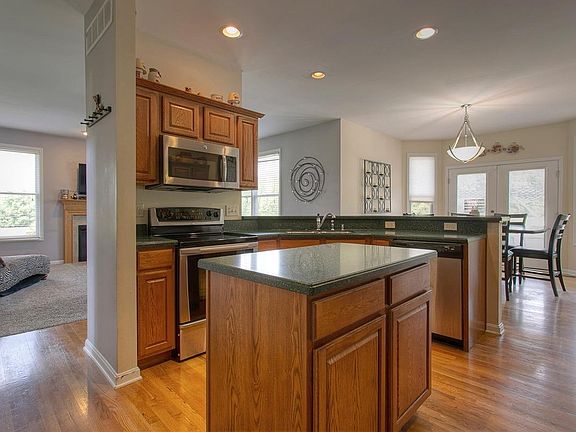 - RoomKitchenFeatures: Kitchen Island, Eat-in Kitchen, Wood Floor, Solid Surface Ctr, Walkout, Wood Cabinets, Counter Bar