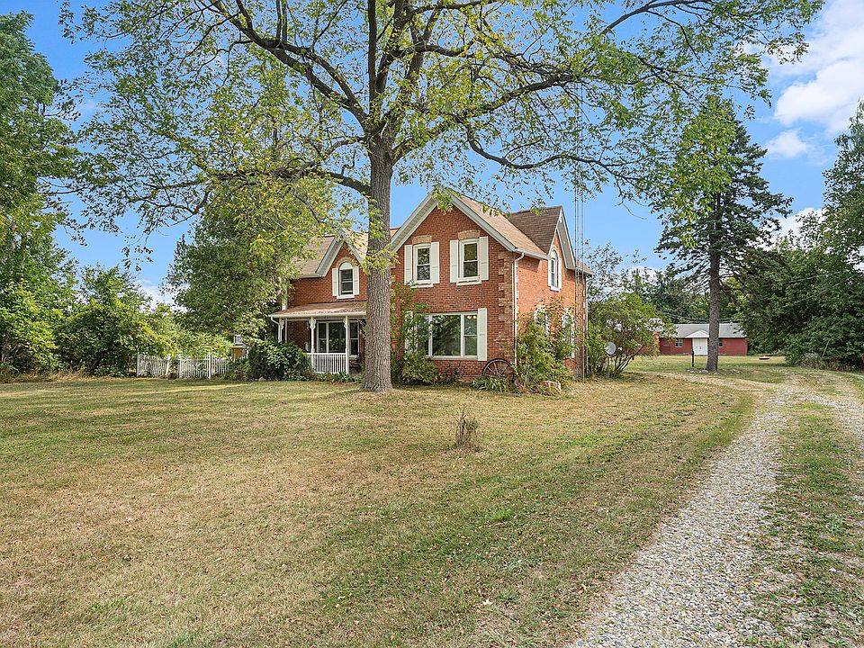 Ready for country living on 20+ acres with extra's? Includes a rental house and tillable land to help pay your mortgage! This century, plus, home has the original exterior brick, but features many modern updates for your family. A beautiful fully remodeled kitchen with floor to ceiling cabinets, pantry, peninsula bar, all with vibrant lighting. The 8x17 breakfast room opens to the kitchen that provides morning sun for the perfect first cup of coffee. First floor includes laundry room with utility tub. Also 9x15 room with two entrance doors from 14x20 back deck or 8x11 rear porch. This room is perfect for those muddy boots, extra sports equipment or utilities. The updated 1st floor primary bath is a luscious 14x12 with jacuzzi tub with view of the yard, a shower, two cedar vanities, ipulent lighting and heated floor. You will know why they call them "picture windows" with panoramic sun sets viewed from the large windows in the 13x17 living area dubbed "the front room" and the 14x19 living room. Natural surroundings include abundant wild life. These two rooms are attached by antique french, leaded glass doors that swing open to extend room for a large gathering or flick on the gas fireplace for a cozy evening for two. Also on the 1st floor is a 10x16 bedroom/sewing room/office or study. This room has great natural lighting and would be perfect for an art room/music room/home school classroom or guest room. The closed stairway leads to 3 large bedrooms upstairs. Many original details add to the charm of an aged farm house but all rooms have been recently redecorated. 2nd floor includes 12x8 bedroom with 6'6x3 closet, 13x9.9 bedroom with 9'9x3 closet, the Master bedroom is 14x13 and opened to 5x9 walk in closet with 9x6 full bath. Other amenities - Radiant electric heated floors on entire 1st floor with exception to carpeted front room and guest room. Brand new Navien wall mounted combo-boiler that provides hot water heat throughout the house.