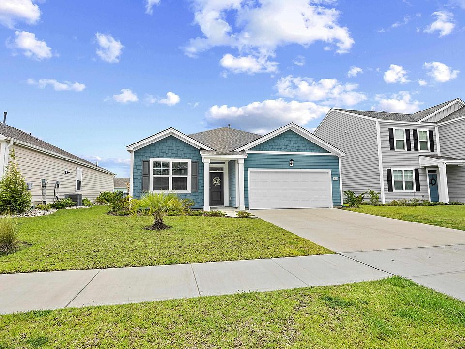 Welcome to this beautiful single-story, 3-bedroom, 2-bath home in the highly sought-after Meridian at Market Common. Built in 2022, this residence features a spacious open floor plan with granite countertops, stainless steel appliances, and a large kitchen island that flows into the dining and living areas—perfect for modern living and entertaining. The primary suite offers a generous walk-in closet and a luxurious attached bath with a dual-sink vanity and walk-in shower. Two additional bedrooms and a full guest bath provide comfort for family and visitors. Enjoy peaceful pond views from the porch, and take advantage of the two-car garage and convenient laundry room. This home has efficient natural gas service, including a tankless water heater and is just golf cart distance to the beach, as well as the shopping, dining, and entertainment at The Market Common. As a Meridian resident, you’ll have access to outstanding amenities including a sparkling pool, hot tub, cozy fire pit, indoor pickleball court, and scenic walking trails—making it easy to enjoy the vibrant, relaxed lifestyle this community is known for.