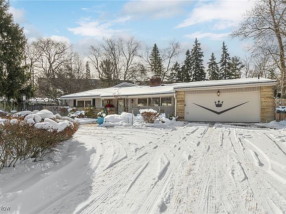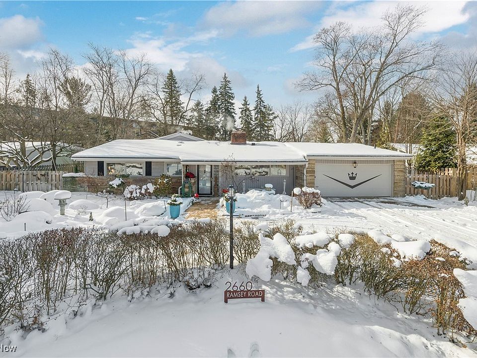Welcome home to 2660 Ramsay Road in the highly sought after city of Beachwood. A charming three bed, three bath, one level living, masterpiece. Through the front door is a long entryway. To the right boasts an eat in kitchen, and an adjacent formal dining area for gatherings/hosting. Newer luxury Vinyl flooring into the living room and family room in the back of the home with vaulted ceilings, wood beam accents and an abundance of natural light. An entirety of character with a warm feel. Down the hall is a full bath and three bedrooms including a guest bed with an additional en-suite bath. The primary suite has an updated, private en-suite bath, vaulted ceilings and a walk in closet. It is important to notate the stunning landscaping in the sunny days of spring through fall. Every inch had been manicured to elude an overwhelming sight and feel of perfection and privacy. Look out to your 15 x 26 vegetable garden, mulched and stone islands, a seating area, landscape lighting and a patio with a gas line are just a few things to mention. A nature stone floored, two car garage with the convenience of a turnaround driveway complete this one of a kind, well taken care of, next place to call home! New roof 2021, new electrical panels, newer carpet, LVP flooring, and paint. Book a showing with your favorite realtor today.